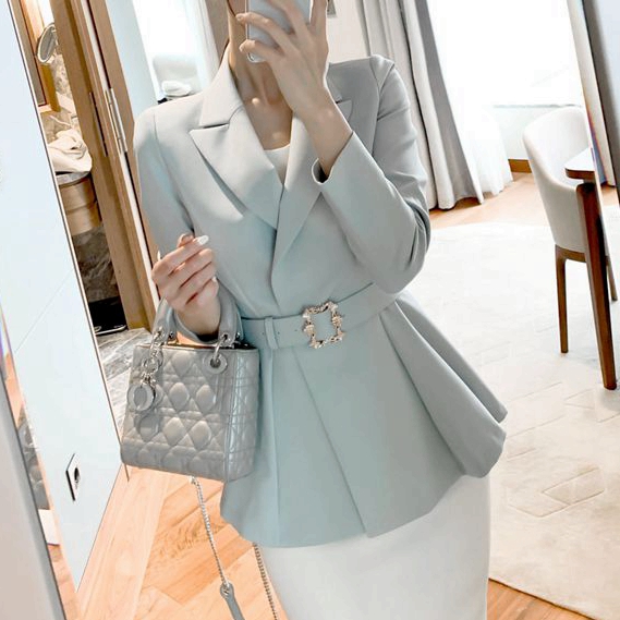 Dark Tip Collar Accessories Belt Loose Swing Closeted Waist Suit Jacket 100 Hitch Commuter South Korea Spring New