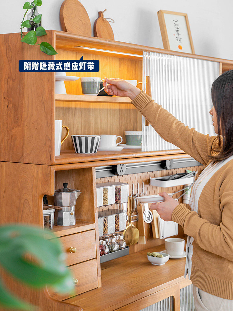 Senzhi furniture Japanese solid wood sideboard wine cabinet one wall kitchen locker cabinet high cabinet home side cabinet