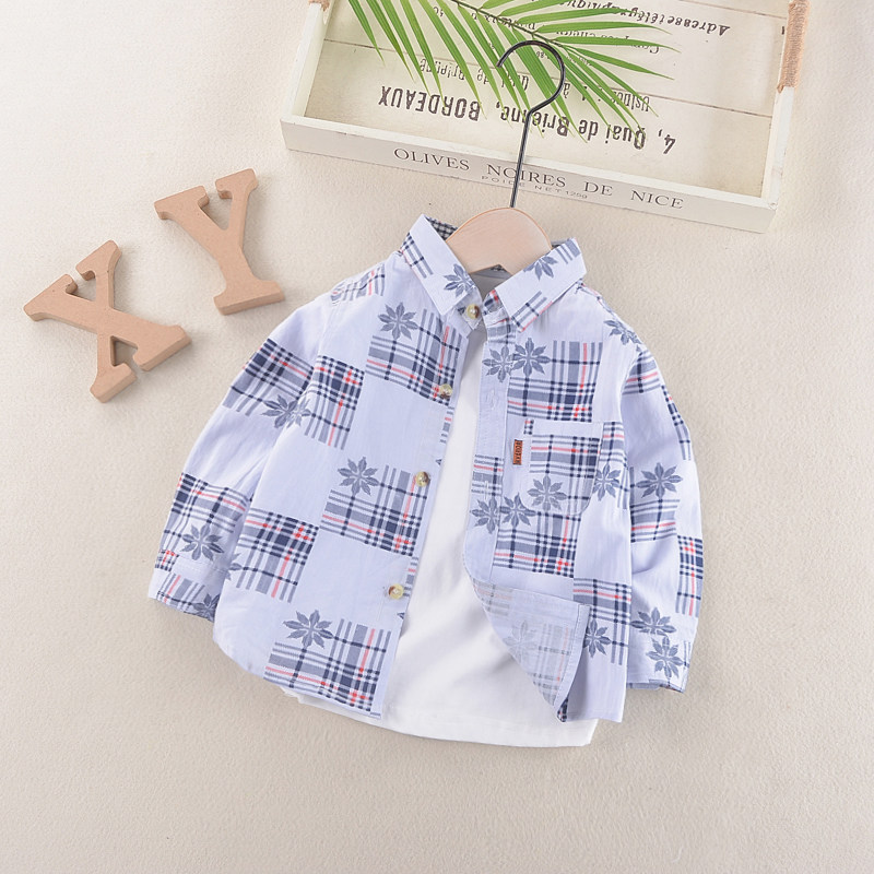 Children's shirt 2021 Spring and Autumn new boys shirt long sleeve Baby Baby Baby cotton floral coat thin
