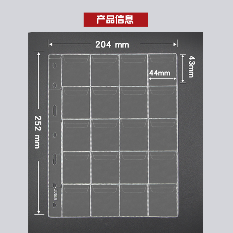 PCCB Ming Tai coin Collection Register Protection of the coin transparent loose-leaf small inner page 7 holes 20