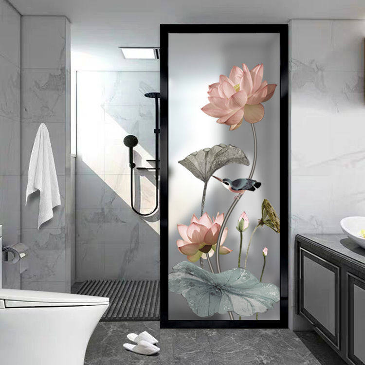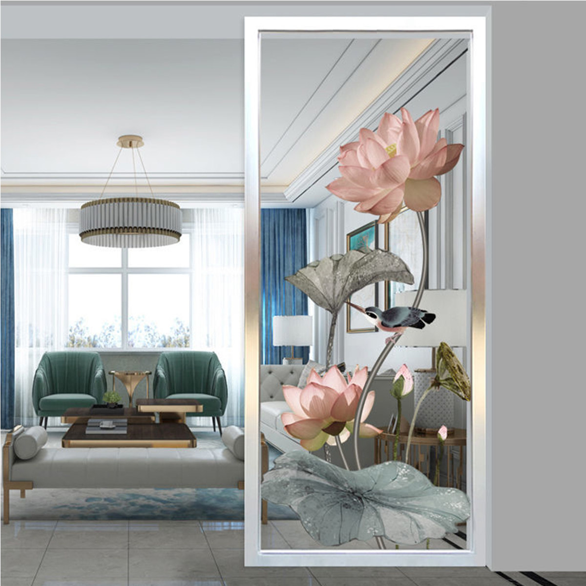 Art glass screen living room entrance bedroom toilet partition block double-sided frosted translucent new Chinese lotus flower diagram
