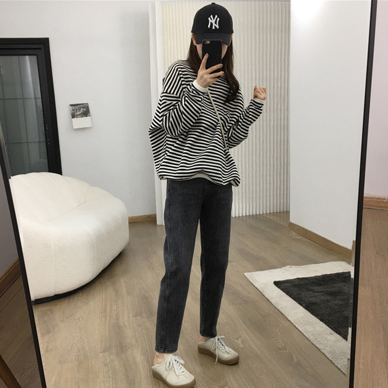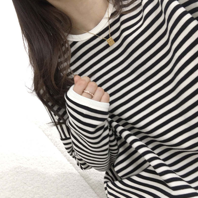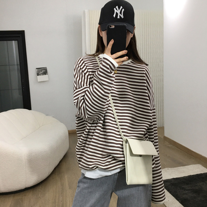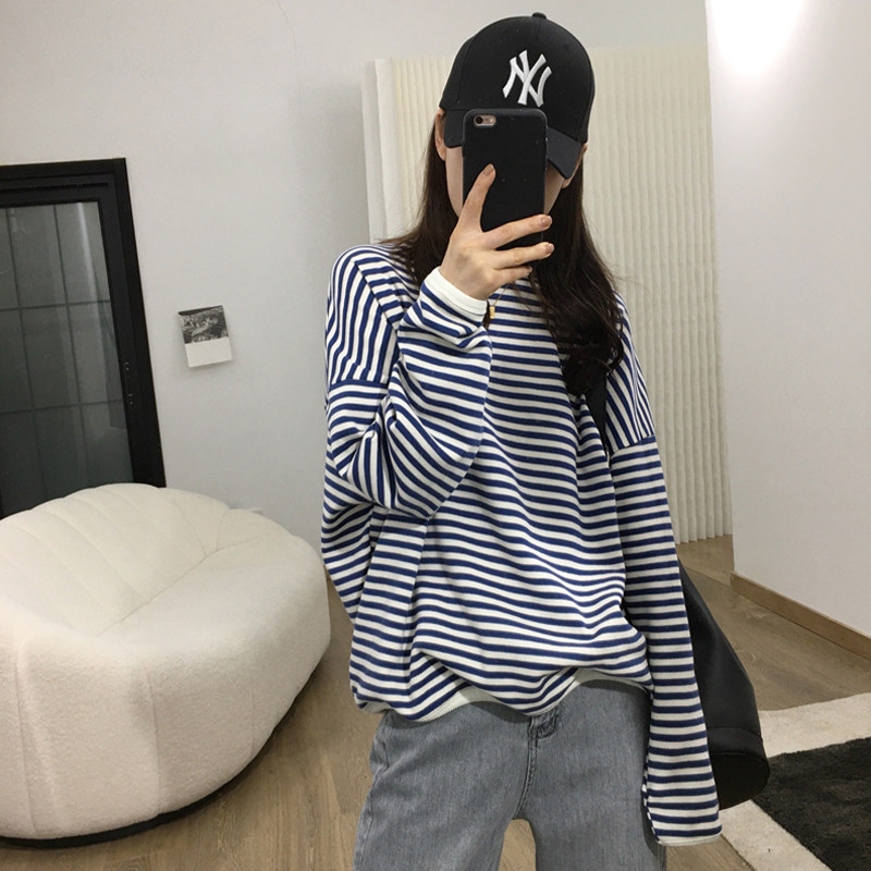 Sweatshirt new 2022 round neck women's spring and autumn thin design sense niche loose Korean version oversize striped long sleeves