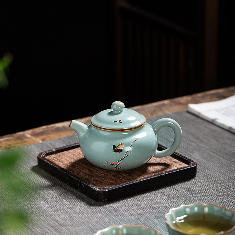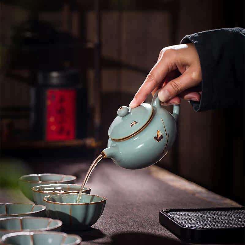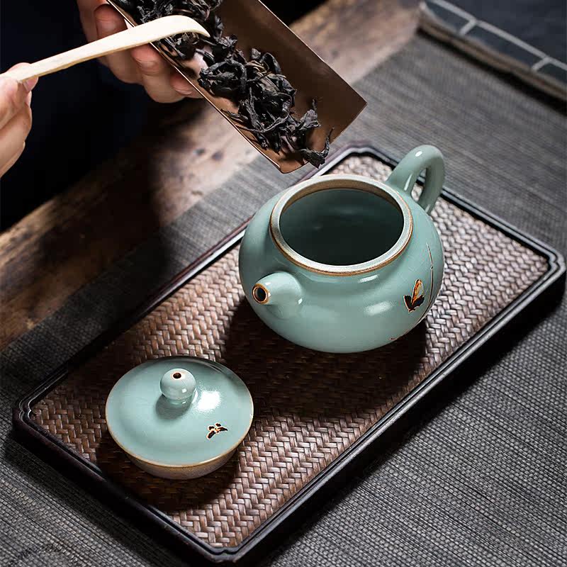 Ruyao Teapot Tea-making ceramic large antique pot Single pot large capacity ice crack Ru Porcelain tea set High-end home office