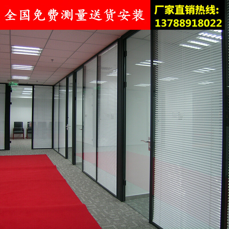 Shanghai office partition wall double glass with louver aluminum alloy tempered glass high partition sound insulation wall hollow glass wall