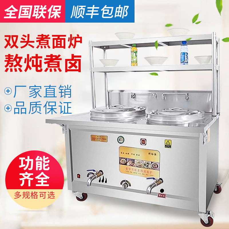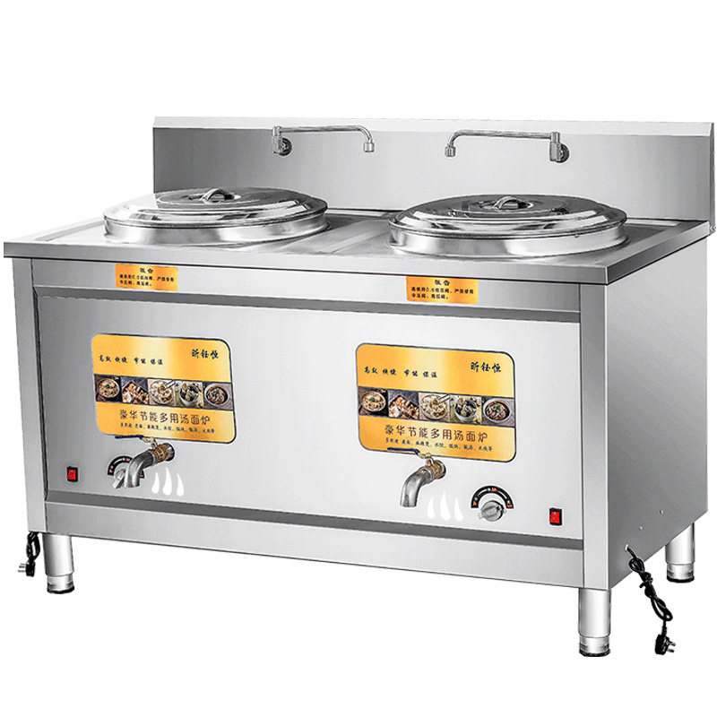 Multifunctional double-head cooking noodle stove Commercial gas electric hot double tank cooking noodle pot energy saving flat-bottomed saucepan soup cooking soup powder stove
