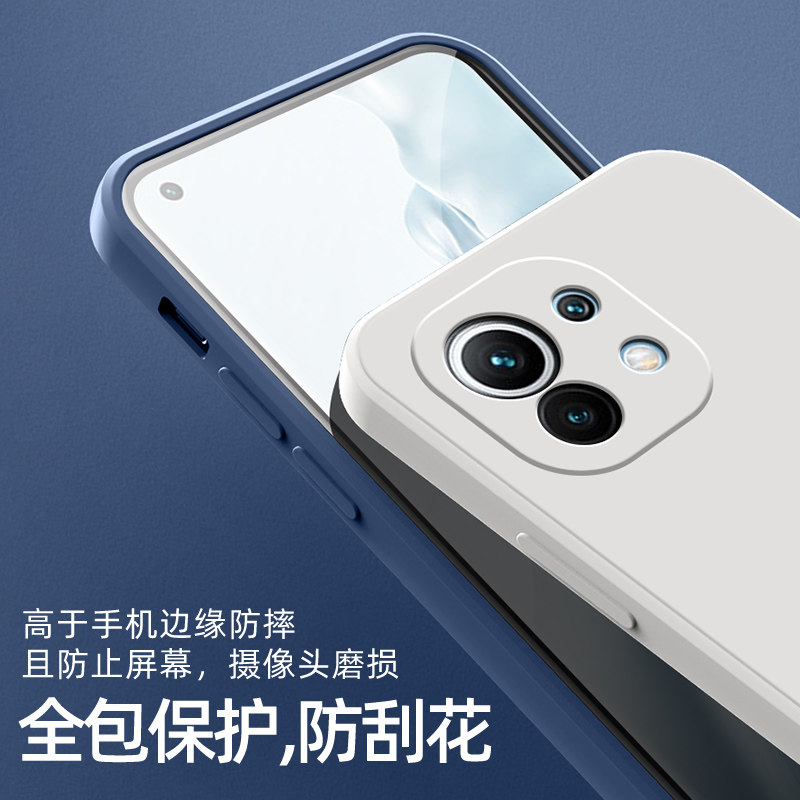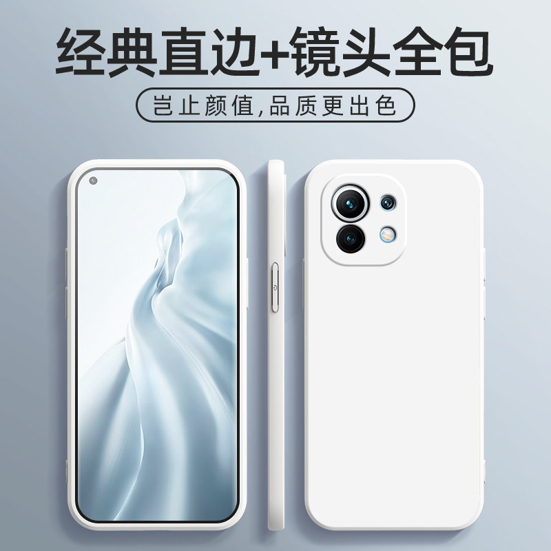 New Xiaomi 11 mobile phone protection shell straight edge liquid silicone full package lens anti-fall dust-proof mi11 limited edition