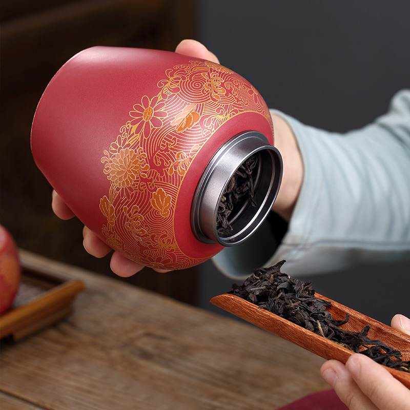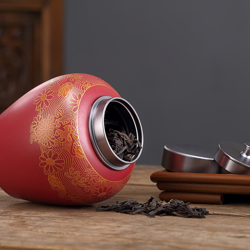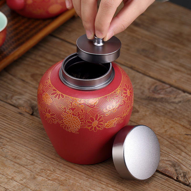 Chinese ceramic tea can Pu'er flower red tea Green tea storage tea can Moisture-proof sealed can Tea warehouse sealed can·