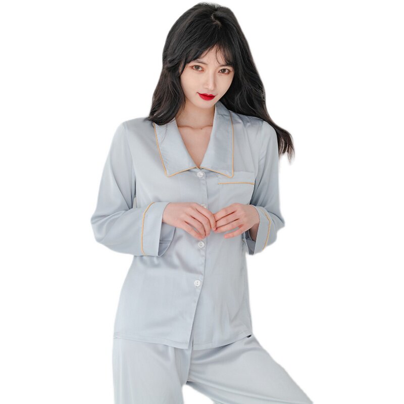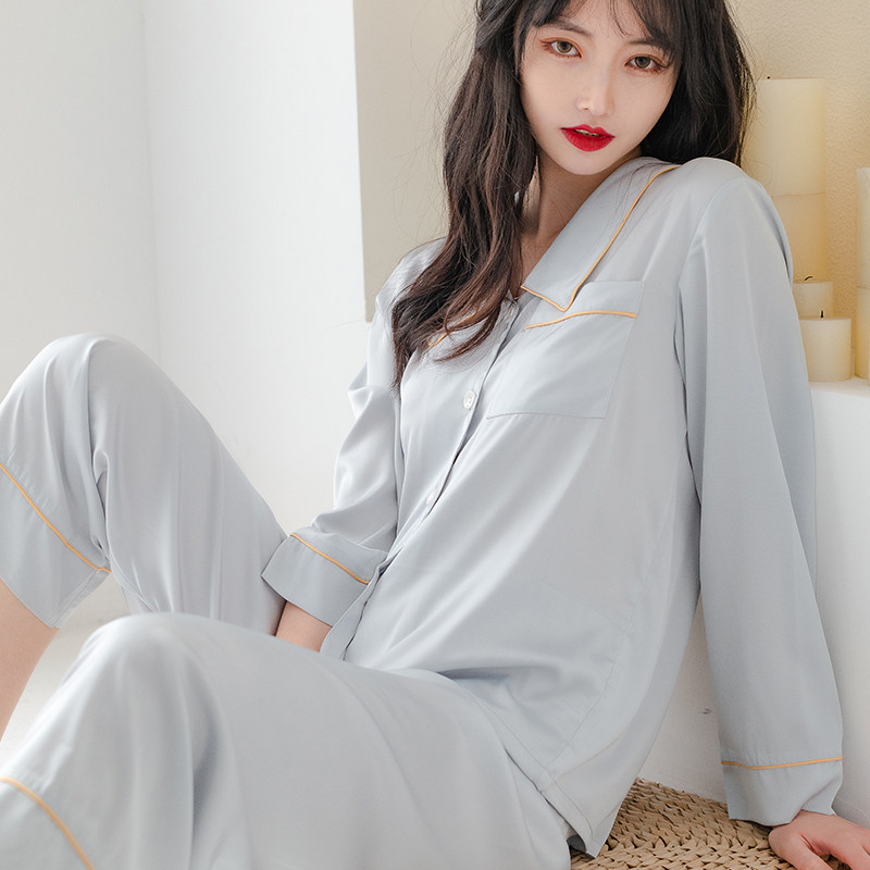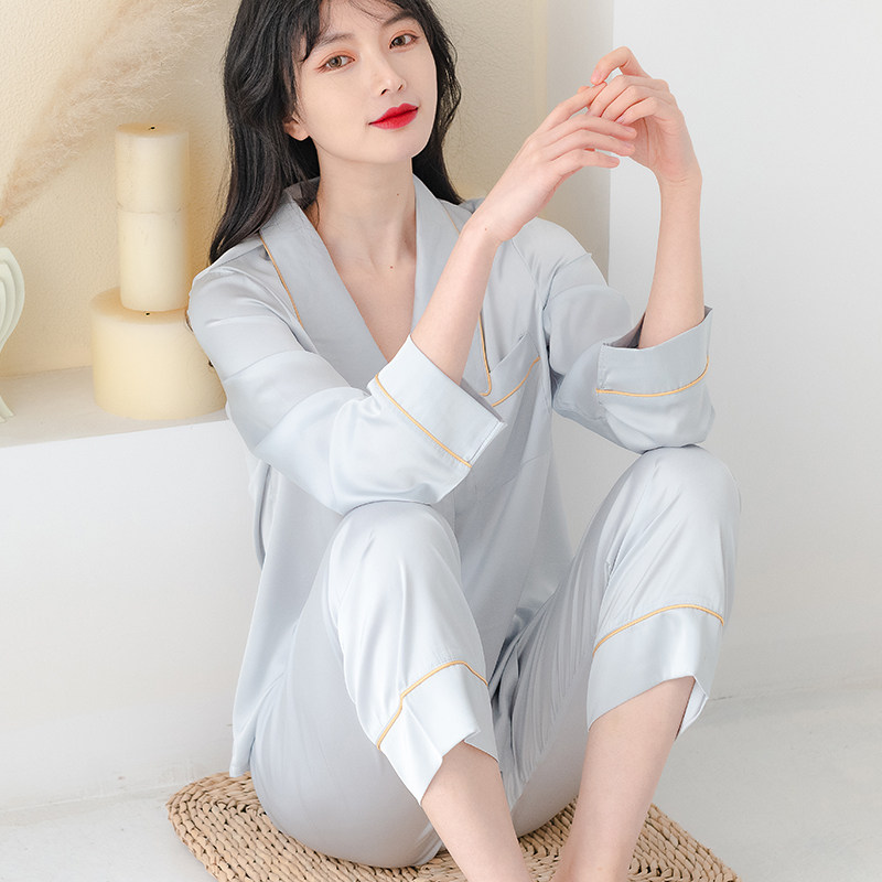 Silk pajamas women's 2022 new spring and autumn style ice silk two-piece suit can be worn outside home service women's summer thin