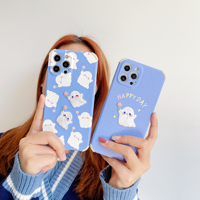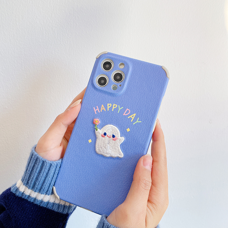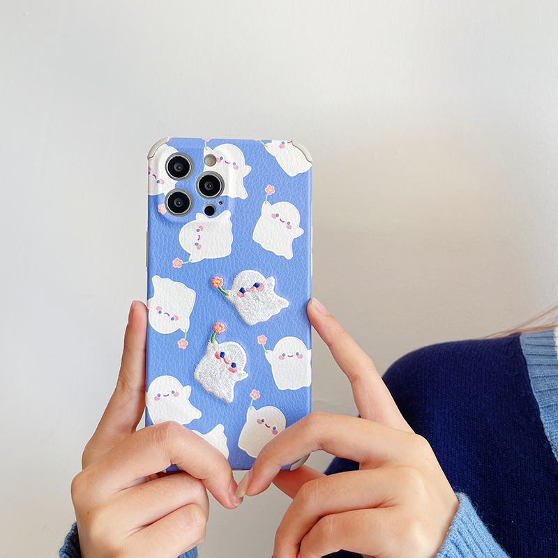 Embroidery cute ghost suitable for 12 Pro Max Apple 11 mobile phone protective shell iPhonese flowers iPhones X XS anti-fall XR lovers 8 protective sleeves 7p