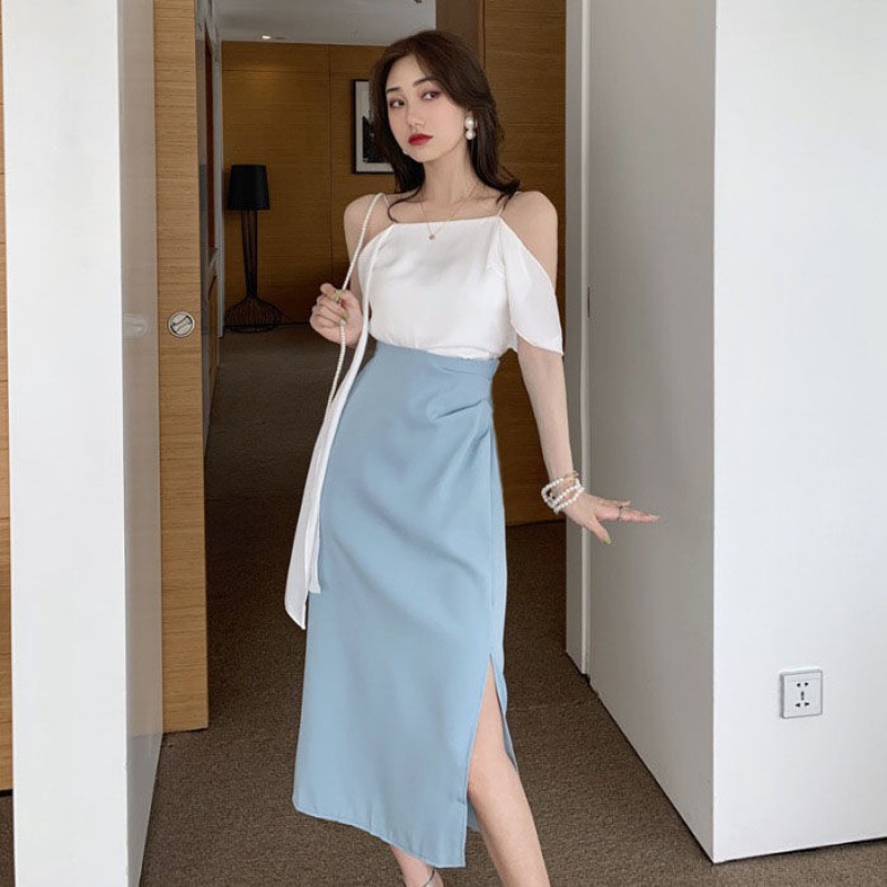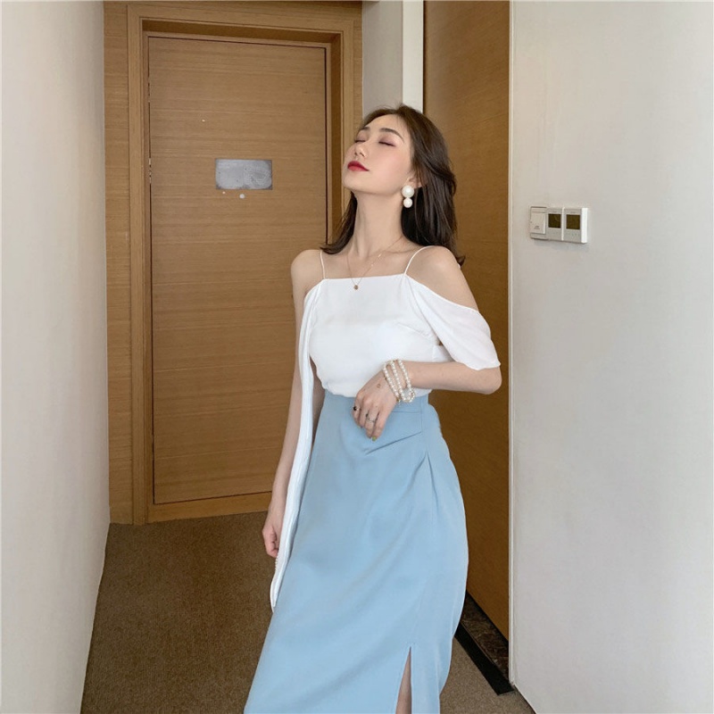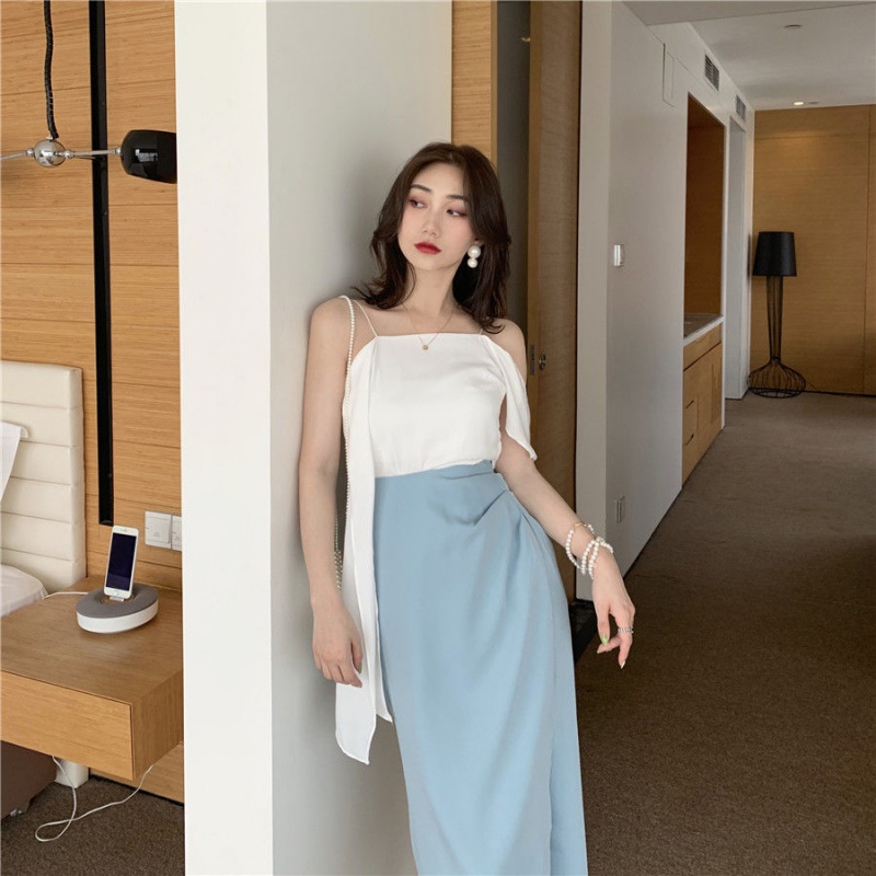 Korean Version Suit Dress Woman Summer Irregular Harnesses Snowspun Blouse High Purse Hip Skirt Half Body Dress Temperament Two Sets