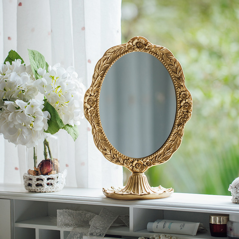 You can live in French carved mirror makeup mirror desktop without lamp desktop bedroom dressing table light luxury retro