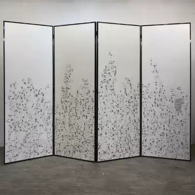 Customized plum blossom three-way screen painting metal frame porch partition simple modern living room office folding mobile screen
