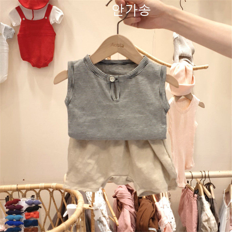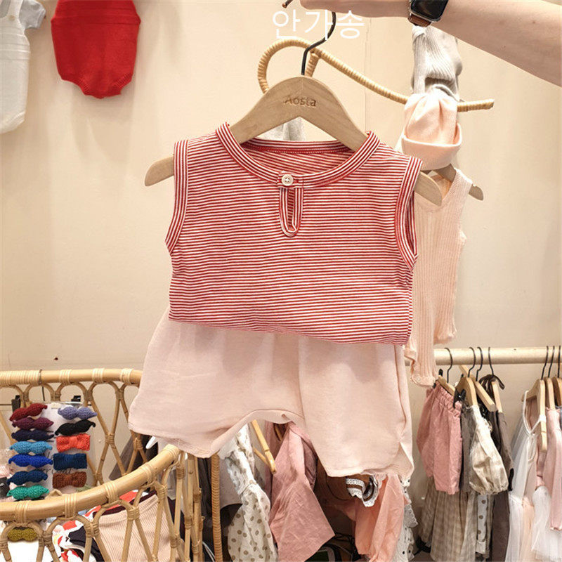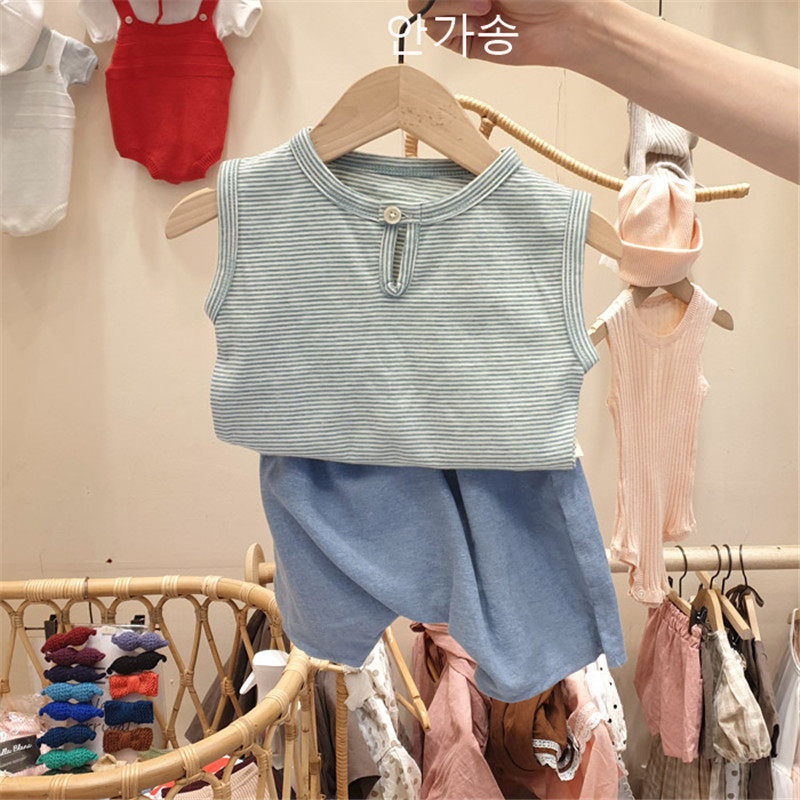 Infant and toddler suit summer thin section ins girls vest shorts two-piece suit male baby big butt pants suit