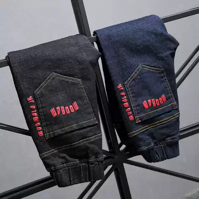 Korean boy pants spring and autumn jeans New Baby plus velvet Korean version of foreign style fashionable children's clothing tide cool