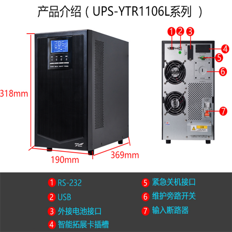 Cowha UPS Uninterruptible Power Supply YTR1106L6KVA4800W Online Long-lasting Machine External storage battery for use