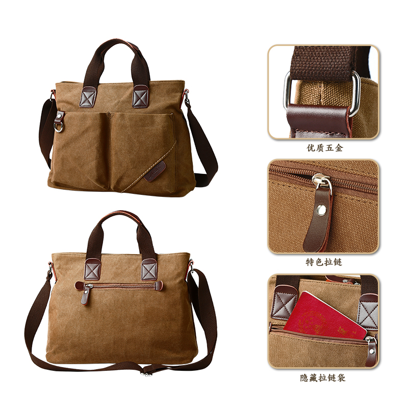 Canvas Slanted Satchel men's single shoulder bag Multifunction scapegoat Multi-pocket handbag Business work commuter briefcase