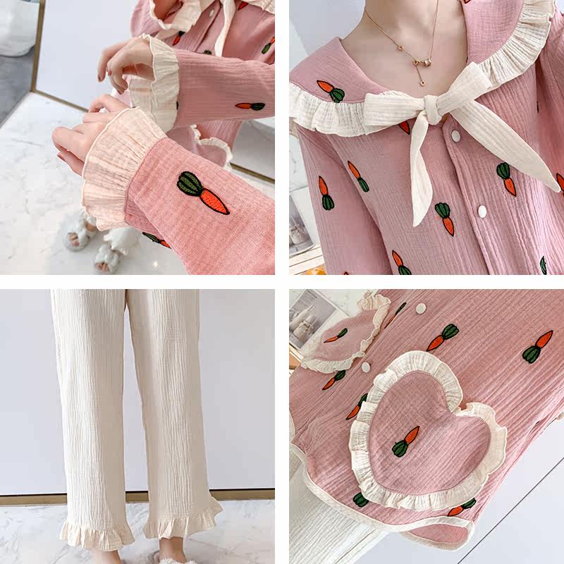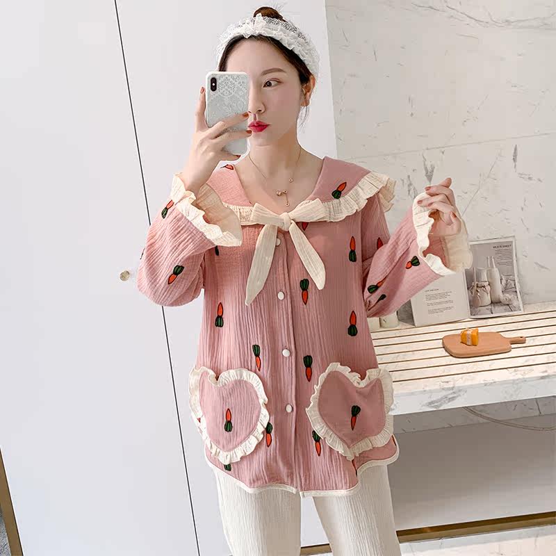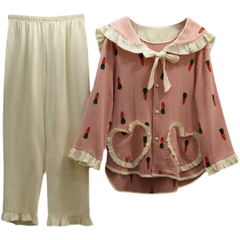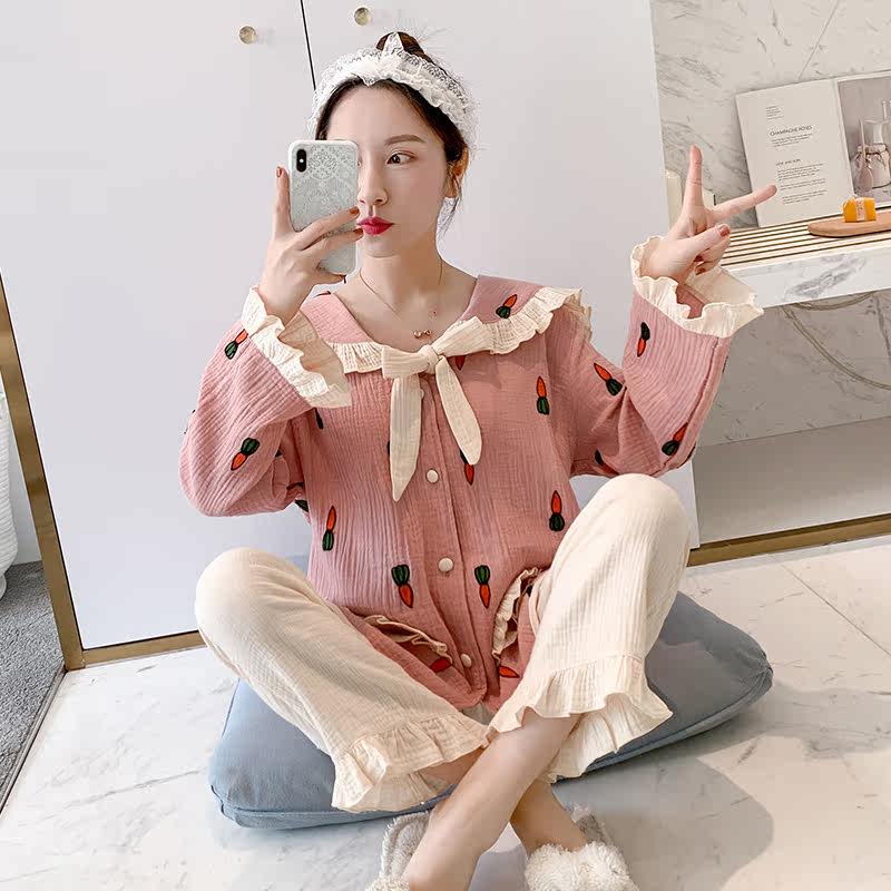 Pyjamas Spring long sleeve cotton INS red sweatshirt Japanese sweet princess girl home suit