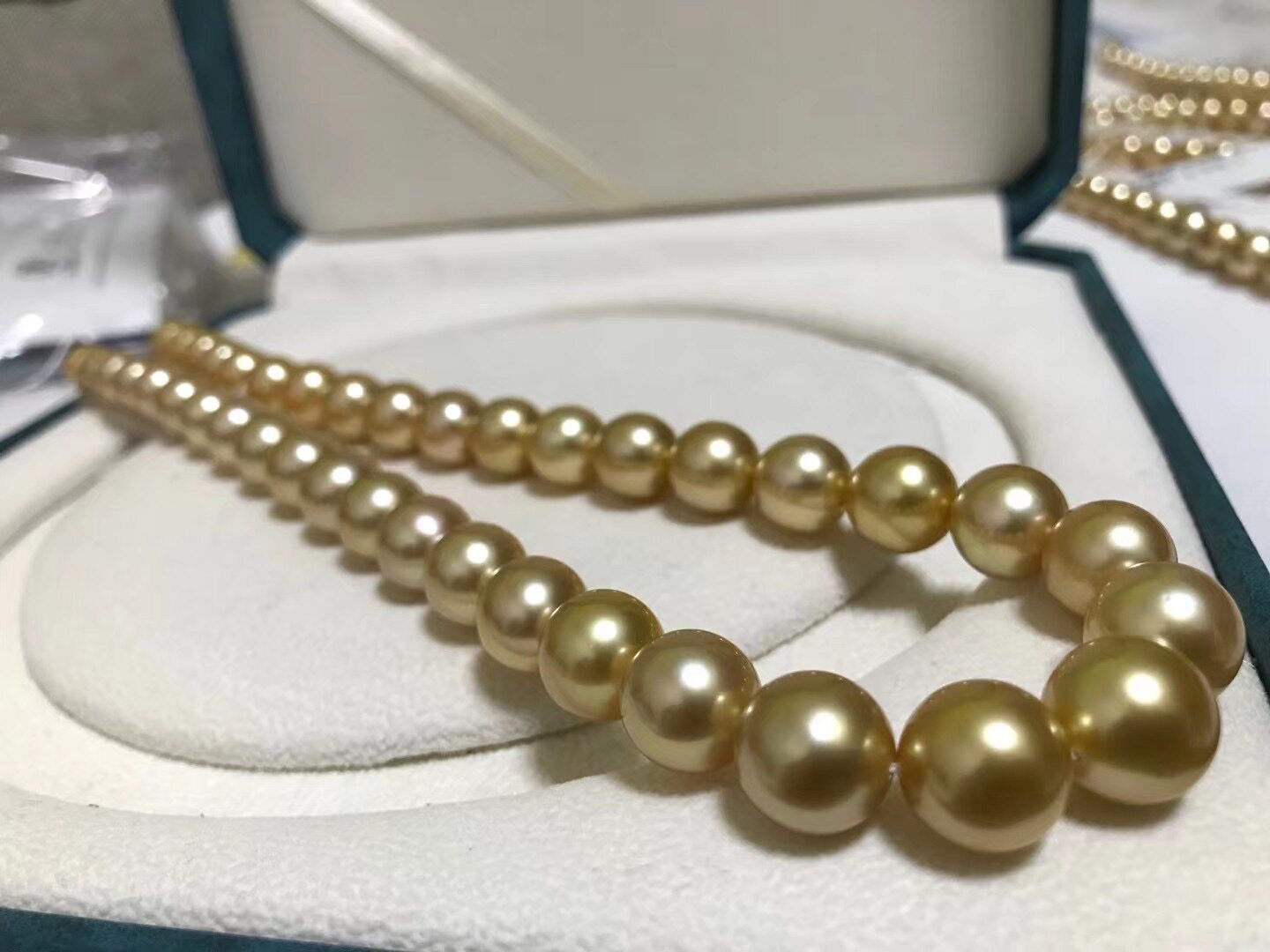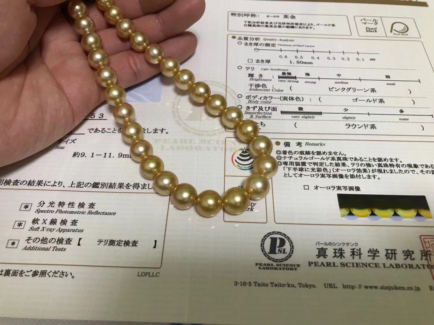 Nanyang Gold Pearl Aurora Tea Gold Seawater Pearl Necklace 9 1-11 9 Zhengyuan Leather Light Thick Japan Real Scientific Research Great License