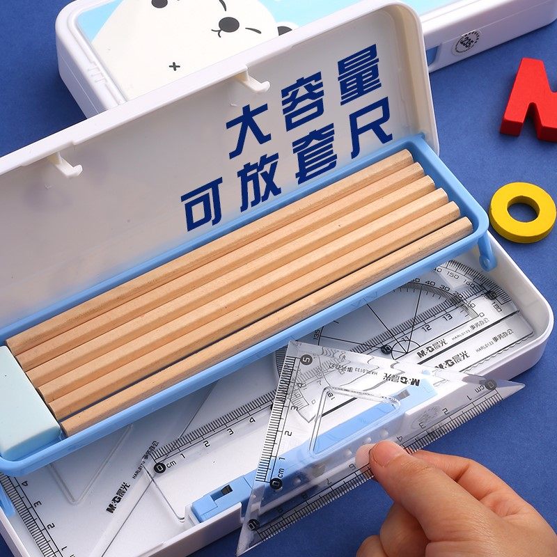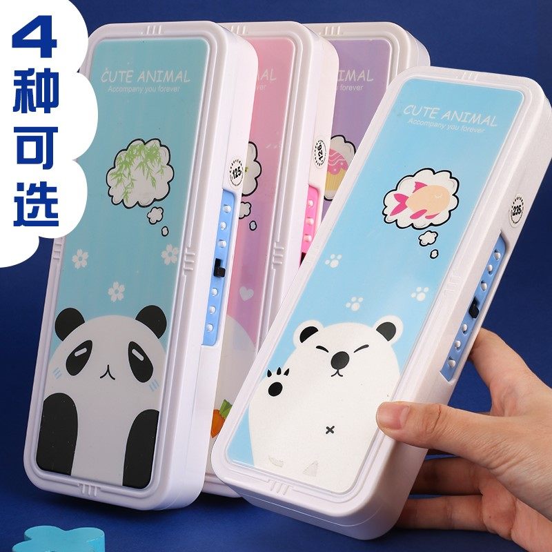 Net red password stationery box for primary school boys and girls large-capacity plastic school master pencil box with password lock two-layer double-layer Cornetto function pencil box creative children's kindergarten stationery