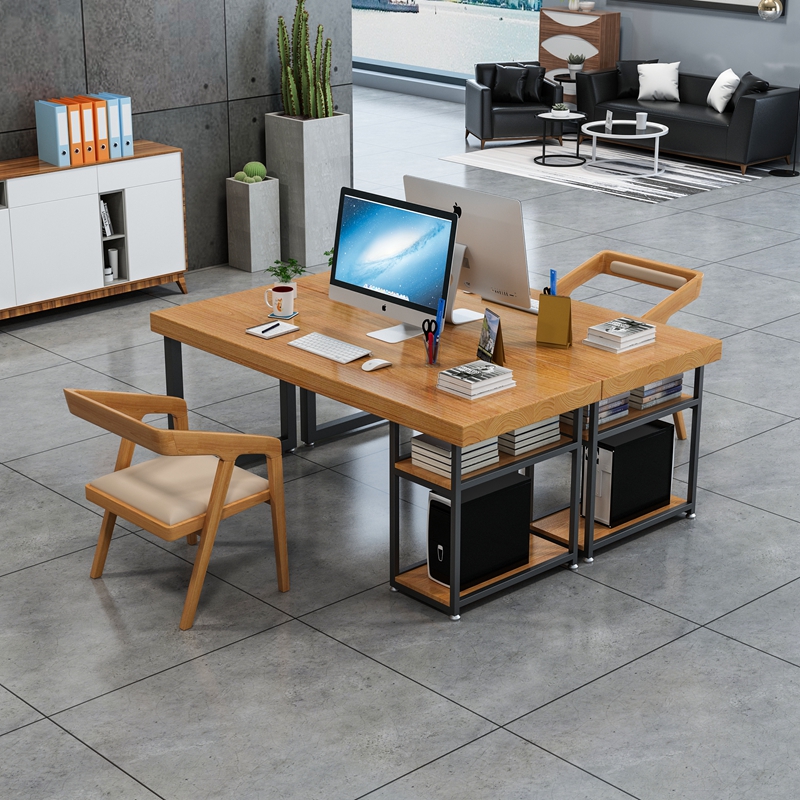 LOFT double solid wood computer desk simple desk industrial style studio staff workbench 4-6 people