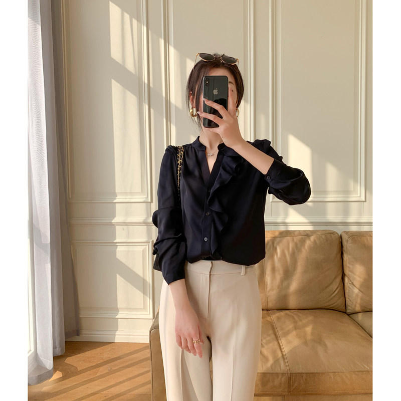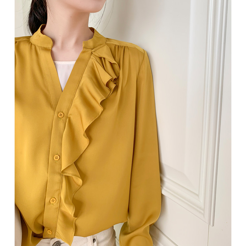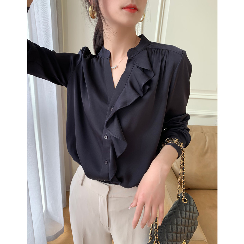 Ma's Jiamin 19mm elastic double Joe wood ear edge mulberry silk shirt real silk blouse