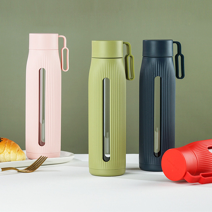 Lock lock glass women's water cup Portable heat-resistant household cup ins simple transparent Korean version drinking cup men