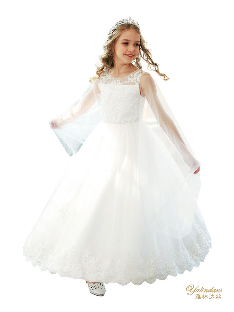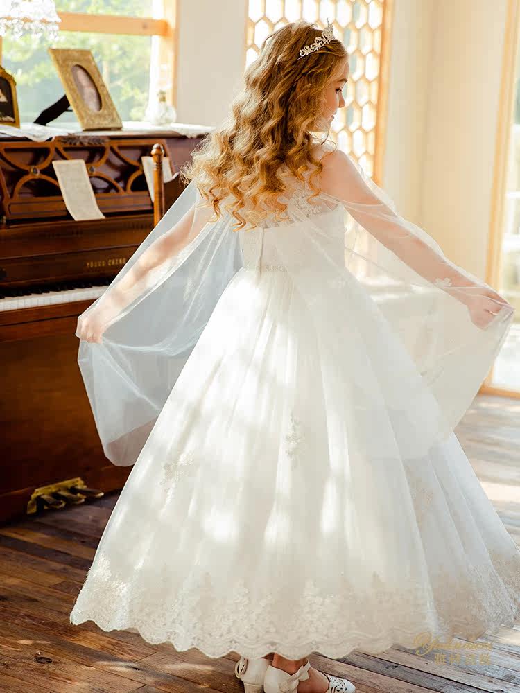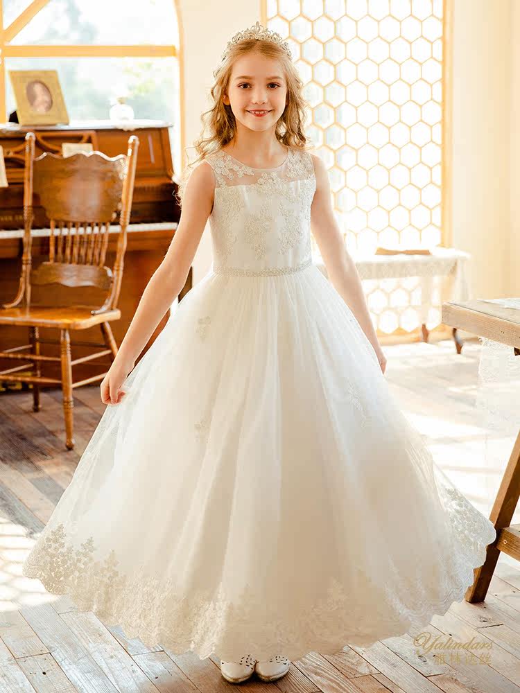 Yalindas children's dress princess skirt girl fluffy flower girl wedding dress piano performance western style high-end mesh