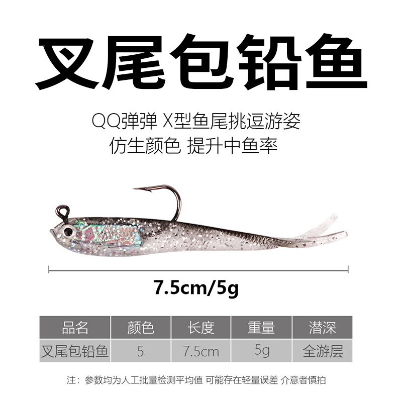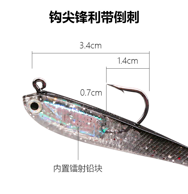 Small Grey Fish Lua Bait Pack Lead Fish With Hook Soft Fish 6 g 7cm Fishing Mandarin Bass Bionic Bait Multi-color Belt No Hook