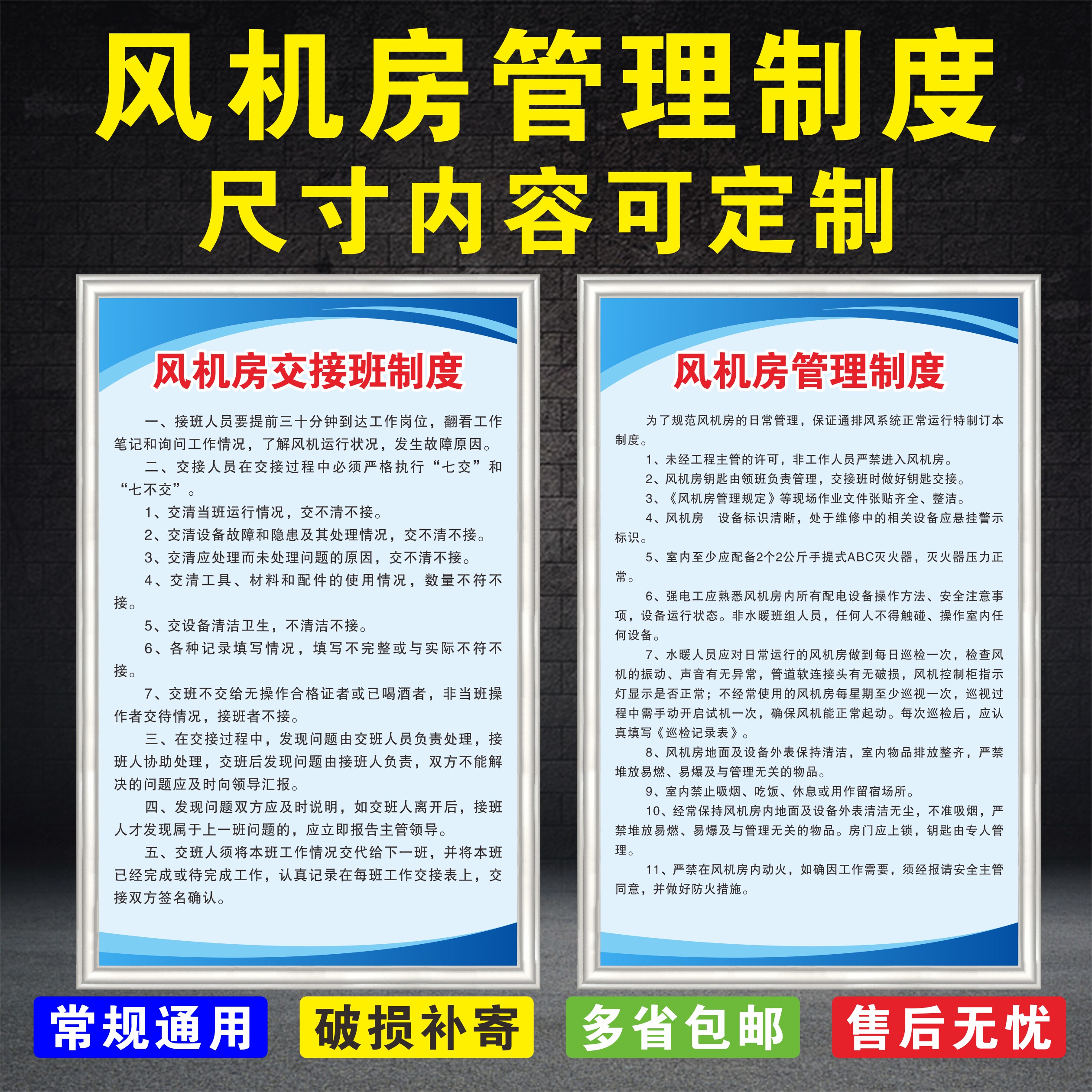 Fan room safety management system fire inspection work process fan room operating procedures fire operation slogan property fire emergency plan warning sign control room system on the wall