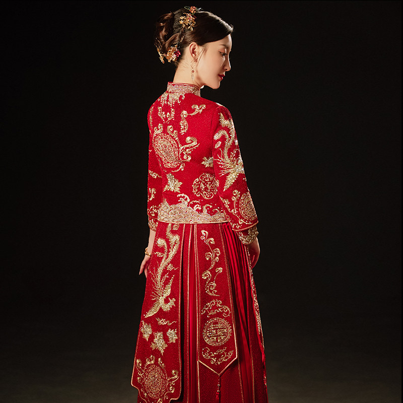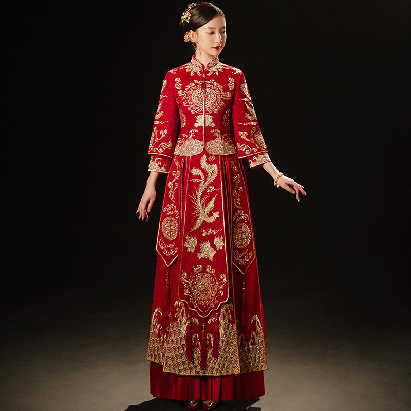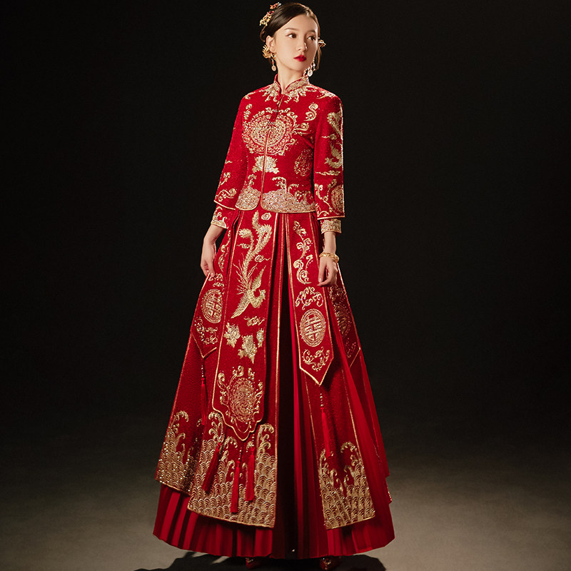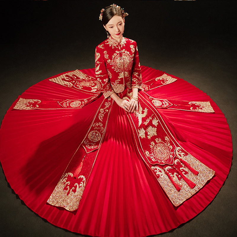 Show Wo Costume Bride 2022 new wedding Conspicuic Wedding dresses Longfeng Hanging Toast to the Autumn Winter Show
