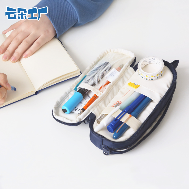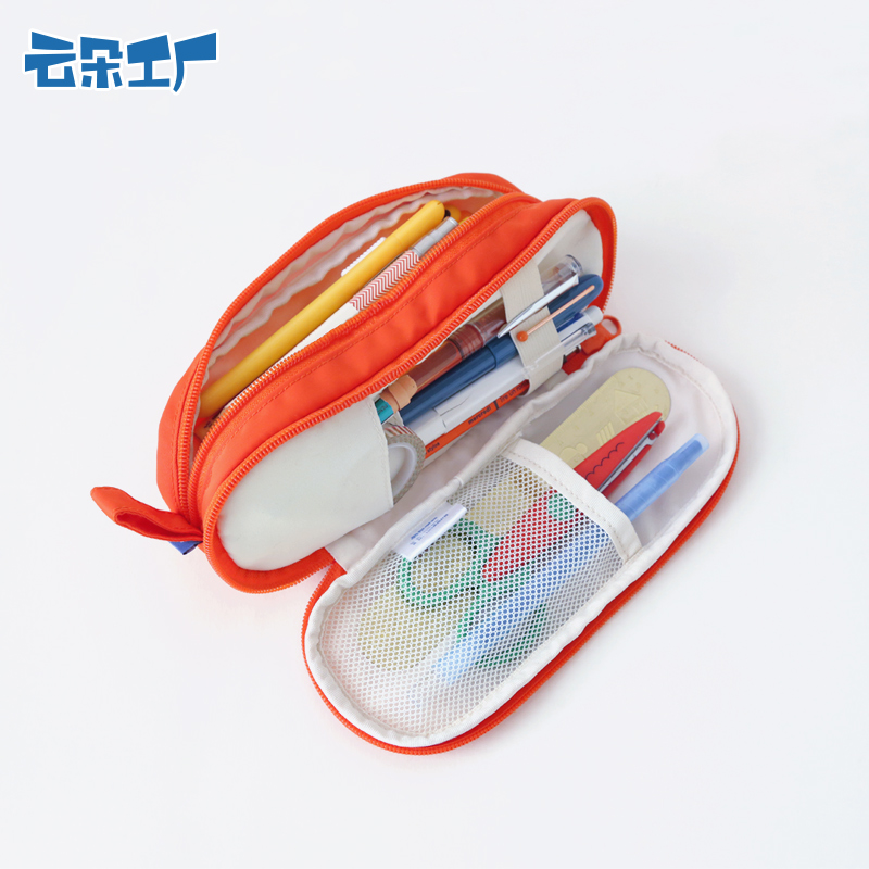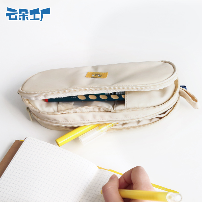 Cloud Flower Factory Small Yellow Face Rounded Bilayer Pen Bag Large Capacity Creative Brief Multifunction Student Stationery Bag