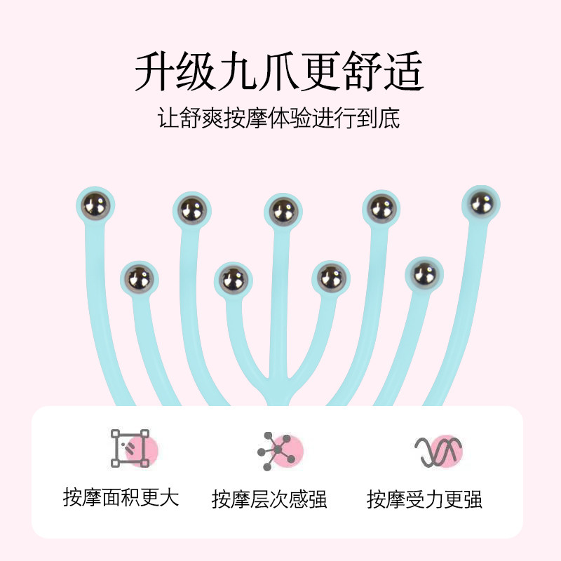 Upgrade 9 claw head massager scalp scratching ball bearing massage comb through five paws octopus head therapy deity