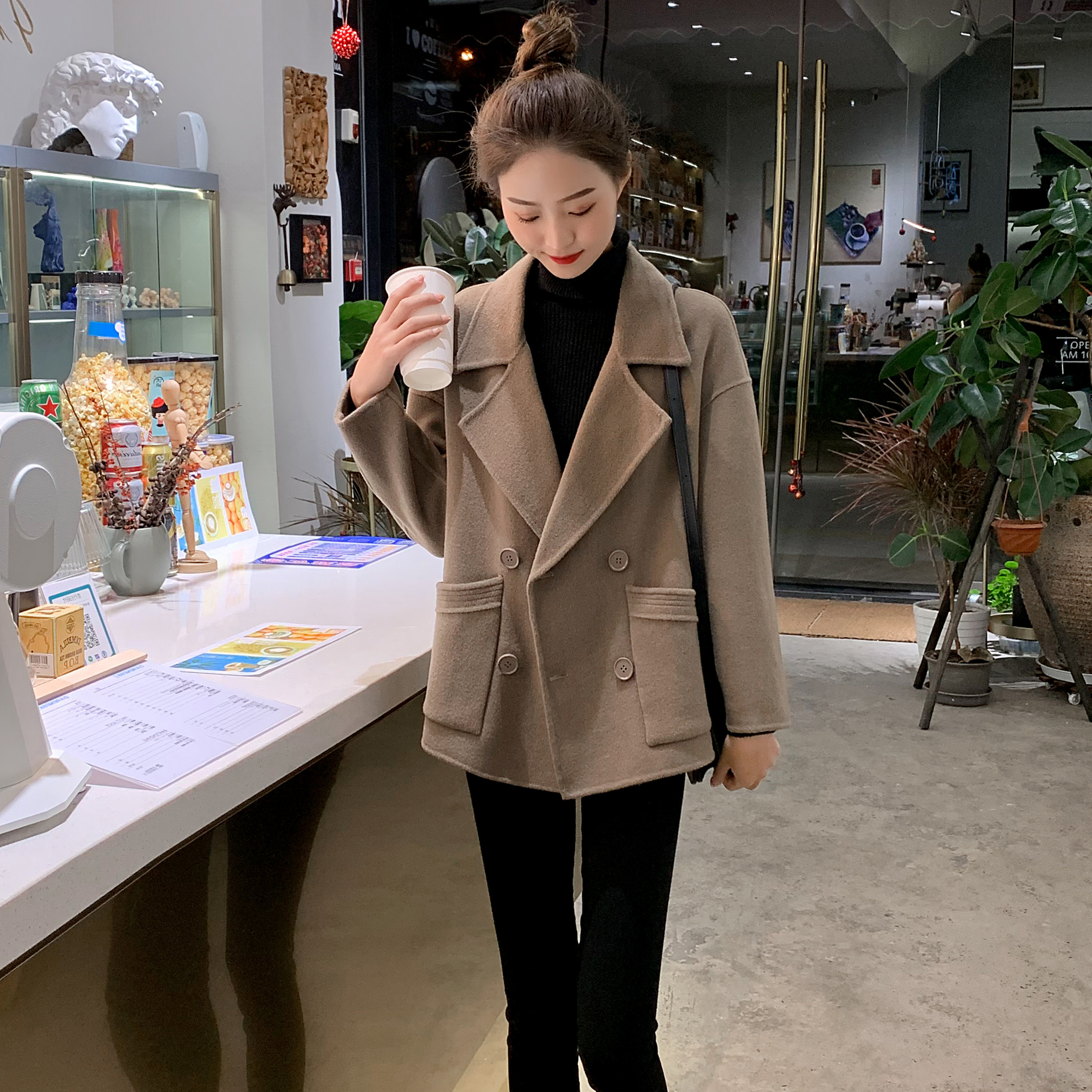 Small woolen coat women's mid-length Korean version 2022 autumn and winter popular new short coffee color woolen coat coat women