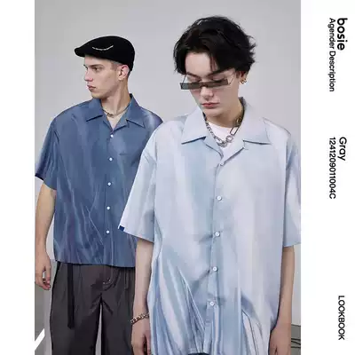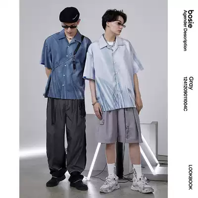 bosie Gray2021 summer new short sleeve shirt male couple Japanese loose shirt women top