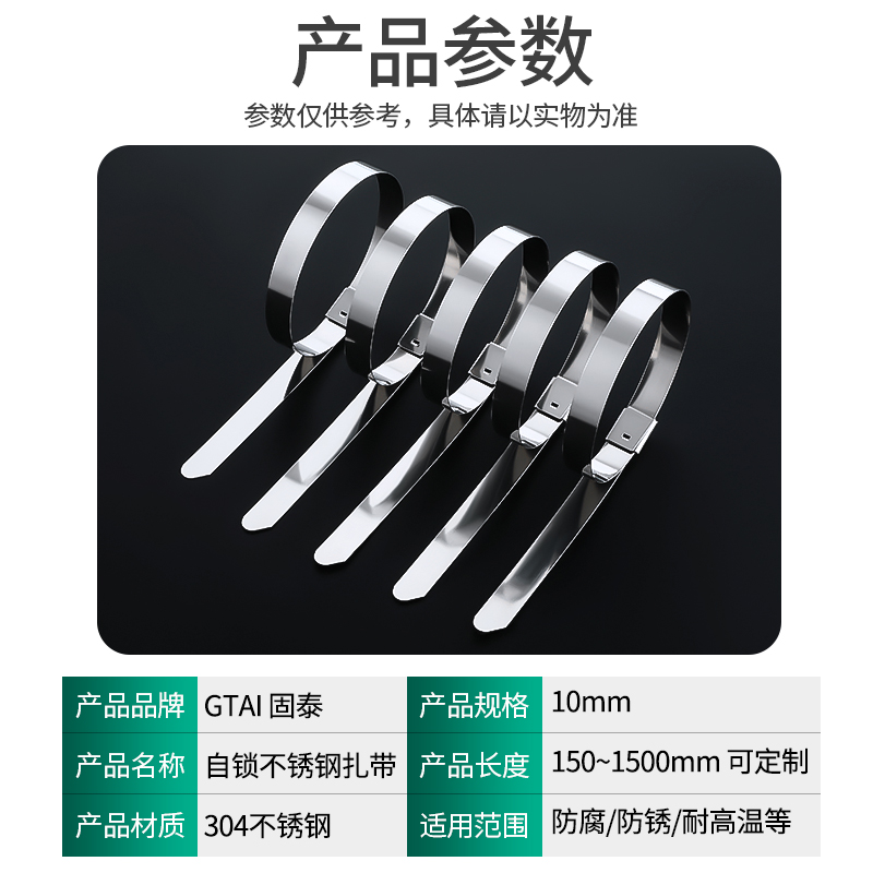 304 stainless steel self-locking 10MM metal cable tie cable outdoor marine traffic tag