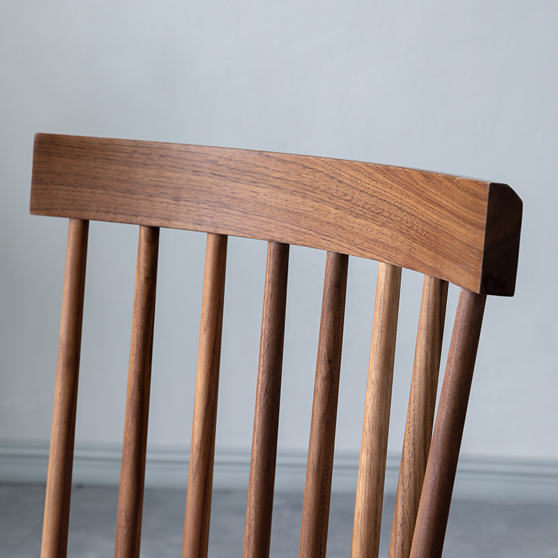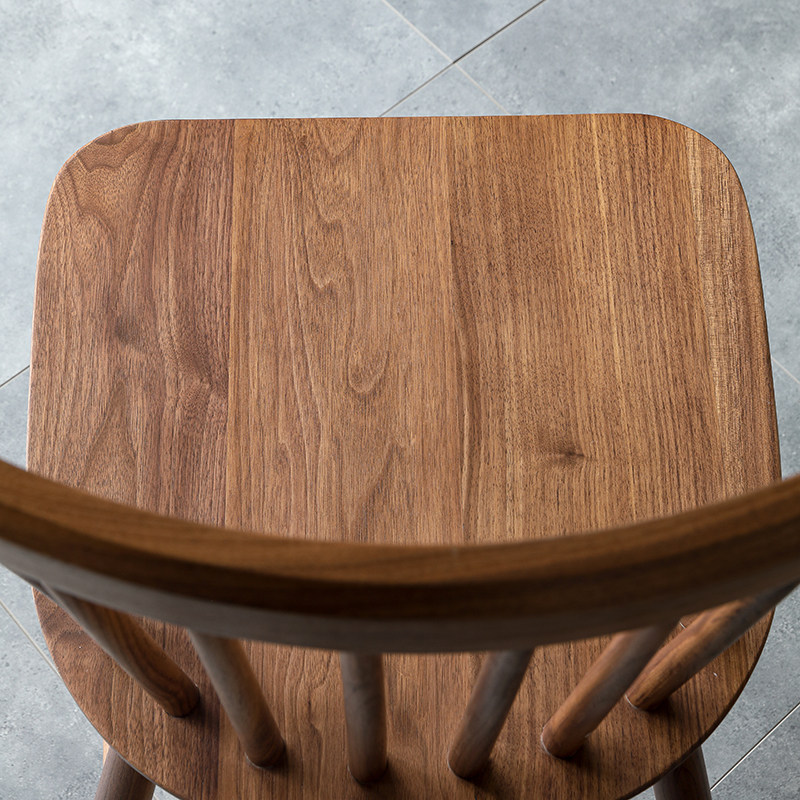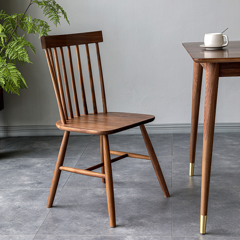ten Shadi Wood Building Nordic Light Lavish Black Walnut Wood Dining Chair Day Style Solid Wood Chair Home Backrest Windsor Chair Modern Brief