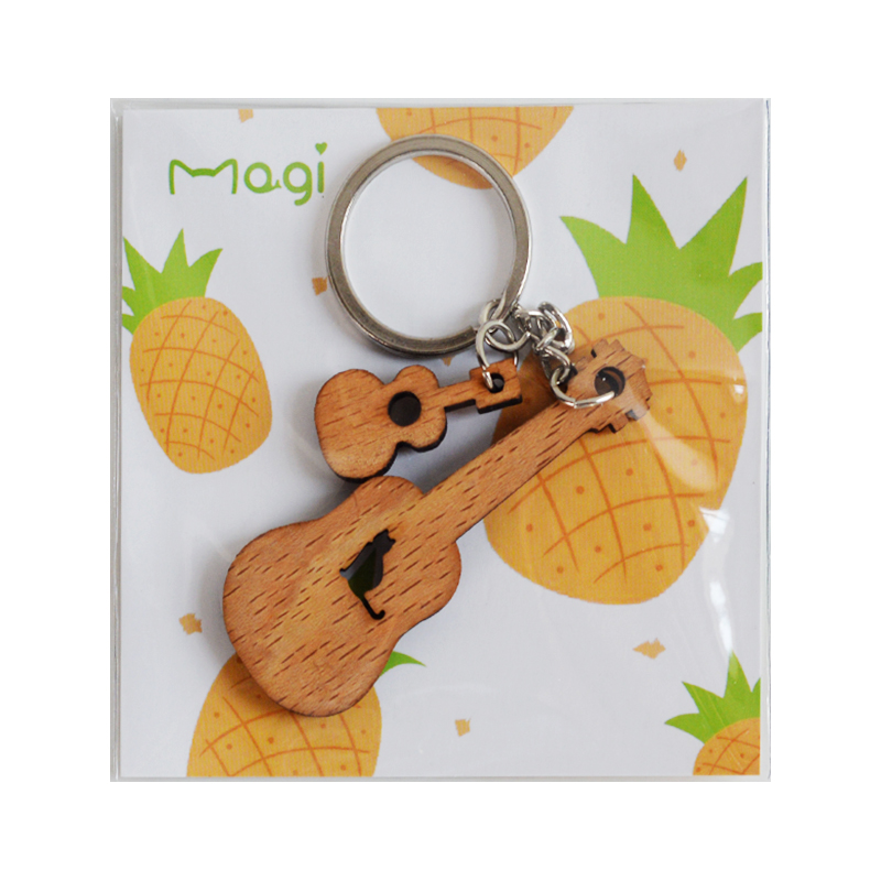 Wooden ukulele guitar violin key chain bag pendant couple men and women creative mini decoration gift