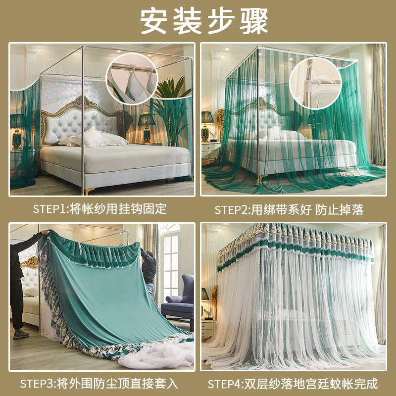 Mosquito net 2021 new bracket rod thicker and thicker high-end household floor-to-ceiling court bed curtain fully surrounded by princess style