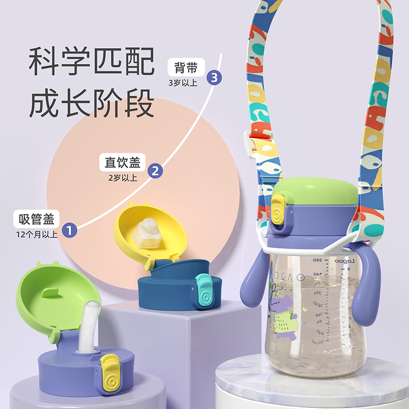 logao Baby straw cup ppsu learning drink cup Baby over 1 year old drink straight drink cup bottle 6 months