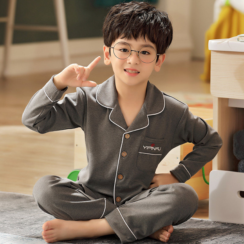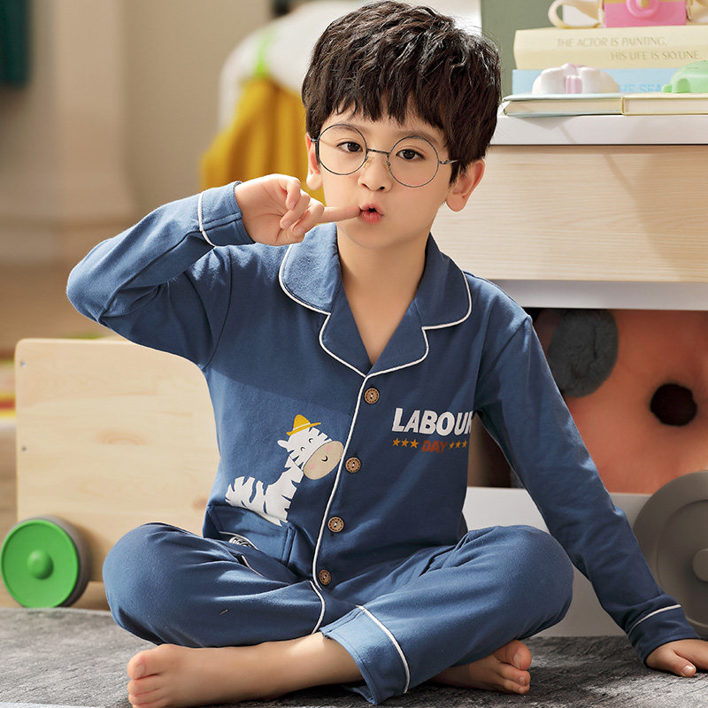 Children's Pajamas Boy Pure Cotton Long Sleeve Spring Autumn Season Kid Cartoon Cardiovert Children's Home Conserved Boy Suit