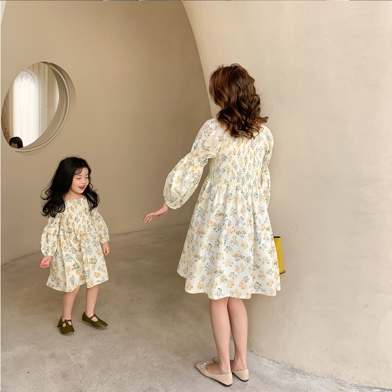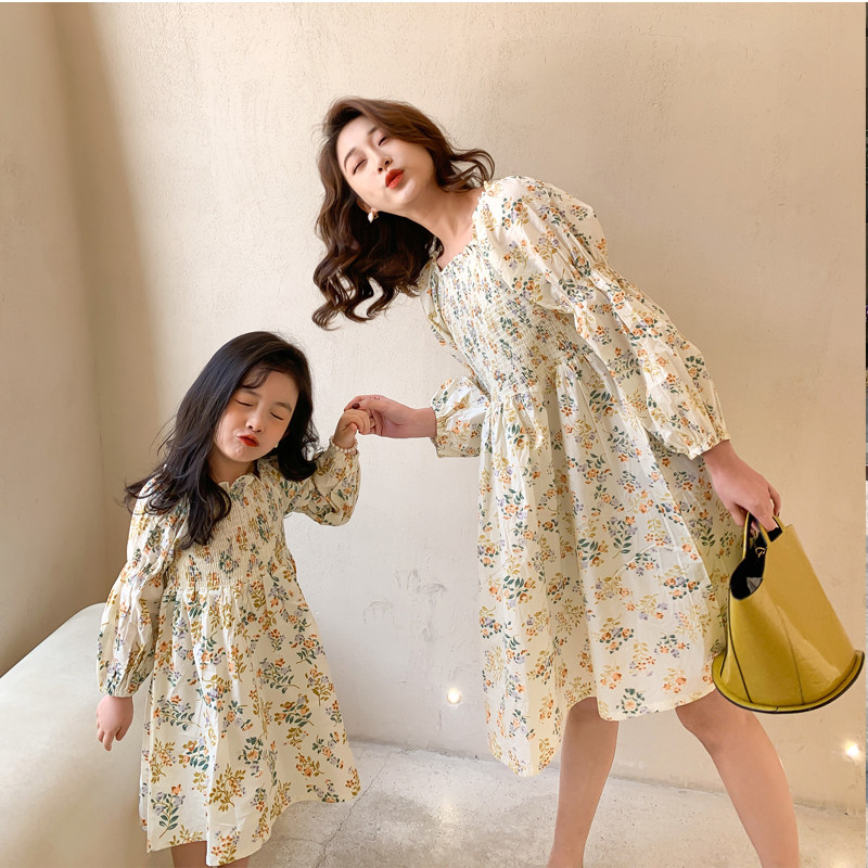 Parent-child dress, mother and daughter dress, floral dress, 2021 autumn new trendy holiday style, gentle one-shoulder princess dress