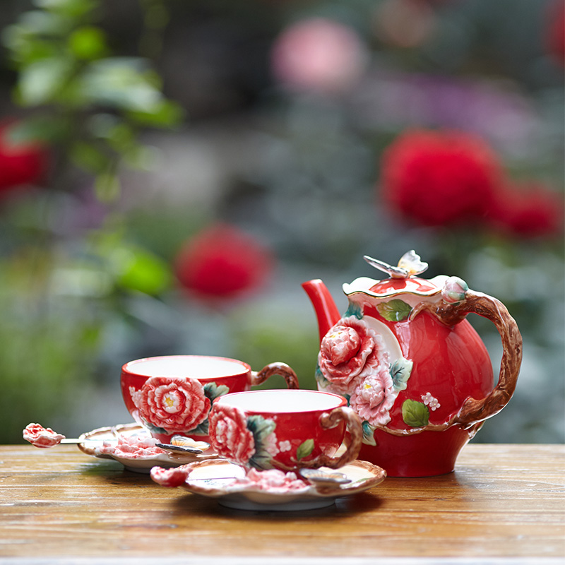 Peony Ceramic Tea Set Chinese Palace Home Coffee Cup Eu Style Retro Black Tea Home Tea Cup Combined Gift Box Dress