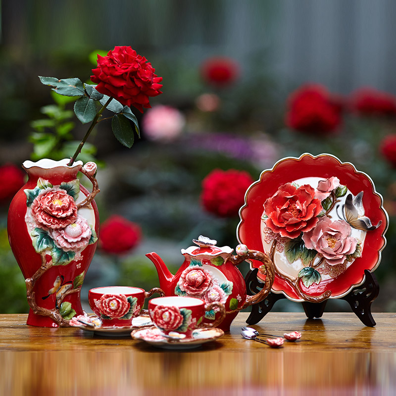 Vase 16 5 * 15 5 * 27 8 decorated disc diameter 25 5 giveaway brackets can be hung 1 teapot 2 2 2 spoons of peony teapot 21 6 * 12 7 6 * 15