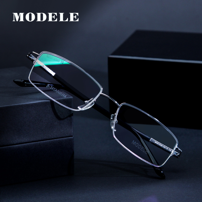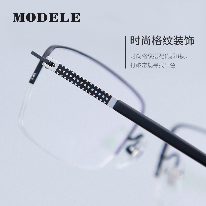 MODELE designer pure titanium myopia glasses frame men's plaid mirror legs square half frame can be equipped with a degree of 12300