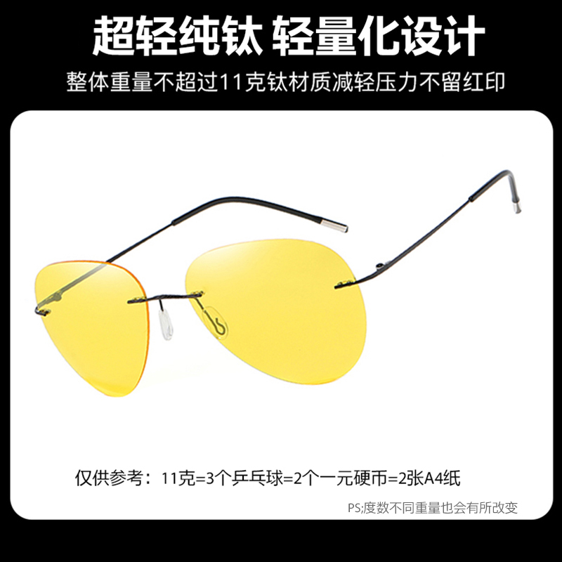 Ultra-light pure titanium anti-high beam glasses men's special myopia night vision glasses for driving at night anti-living room lights frameless mirror