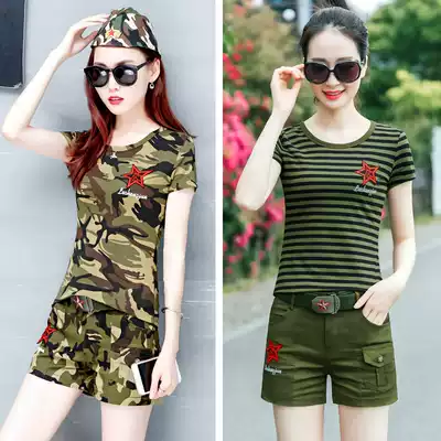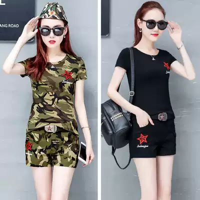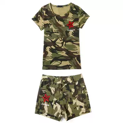 Camouflage clothing short sleeve T-shirt shorts set 2021 summer women's military uniform casual military fans color town temperament two-piece tide t