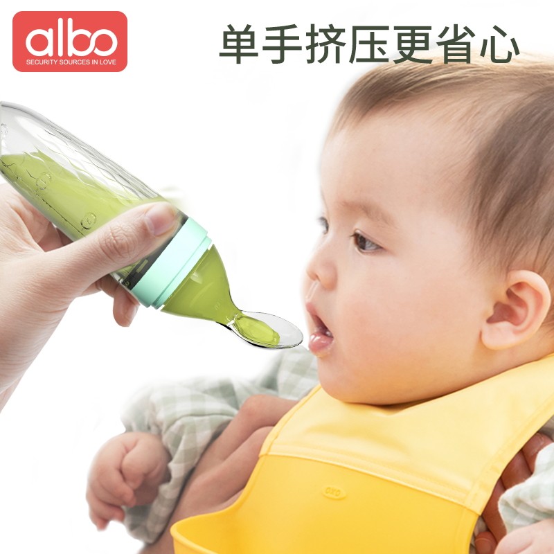 albo baby rice flour spoon squeeze style silicone gel soft tablespoon rice burnt spoon feeding bottle baby deputy food tool feeding deity