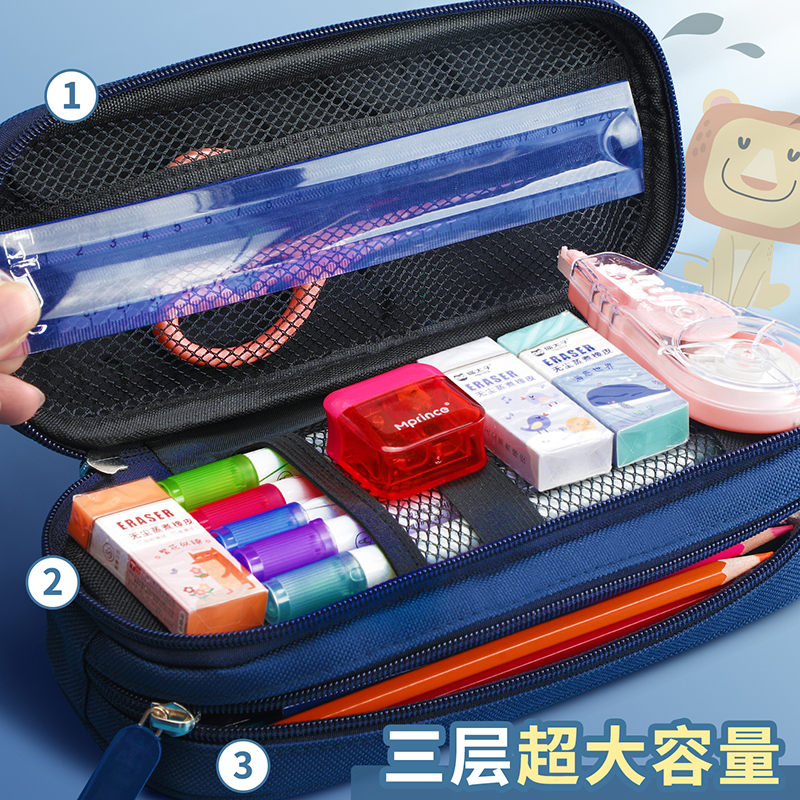 Portable double layer pen bag (classic black) portable double layer pen bag (fog powder) minimalist double pen bag (foggy blue) minimalist double pen bag (classic black) 3D double layer pen bag (foggy blue