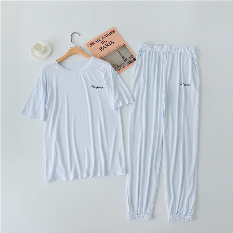 Summer modal men's two-piece short-sleeved trousers pajamas thin home service ice silk suit can go out gray