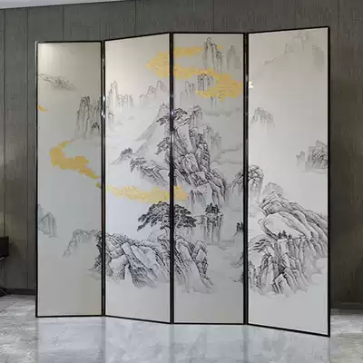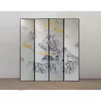 Modern minimalist Gongbi landscape hand-painted gold leaf painting folding screen partition Hotel office custom wall metal frame